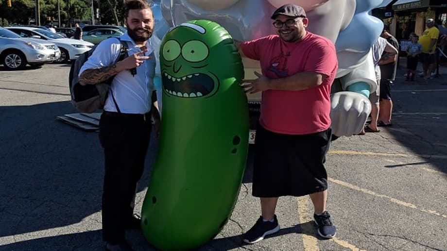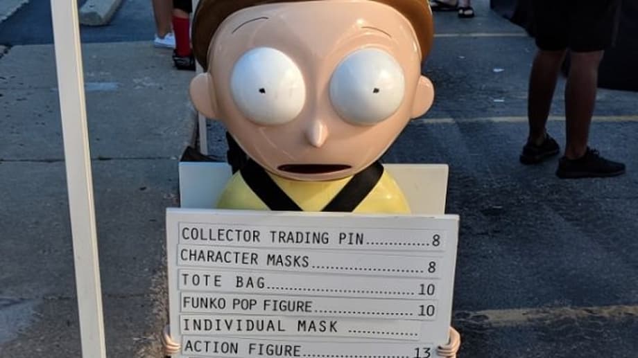 Rick and Morty Don't Even Trip Tour Staff Member who I spoke with is named Jayla, and she is pictured here, helping a young fan while surrounded by a number of pieces of smaller merchandise, including Rick plushes, Pop Vinyls, pins, and a larger Morty mask. As things cooled down around five o clock, (that's when they "close"), I managed to ask a few questions and Jayla was happy to give me some information on the tour.