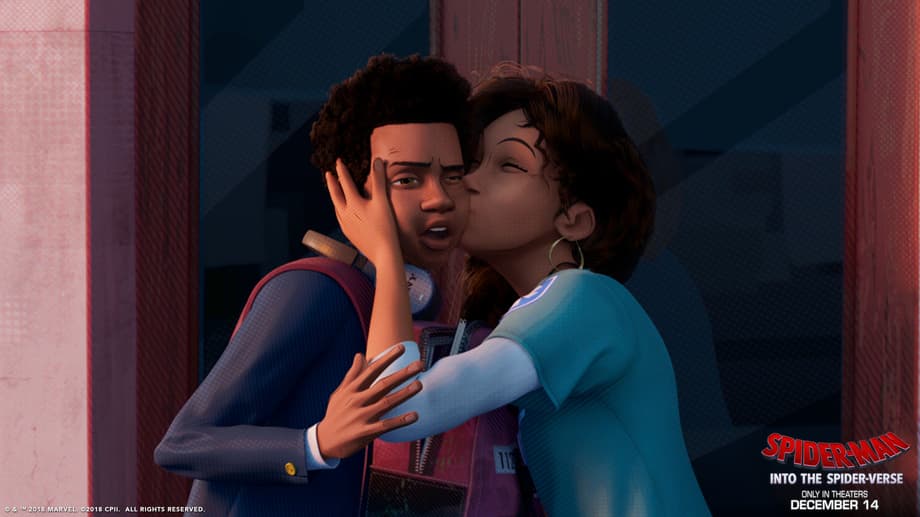 Miles Morales (Shameik Moore) and Rio Morales (Luna Lauren Vélez) in Sony Pictures Animation's SPIDER-MAN: INTO THE SPIDER-VERSE.