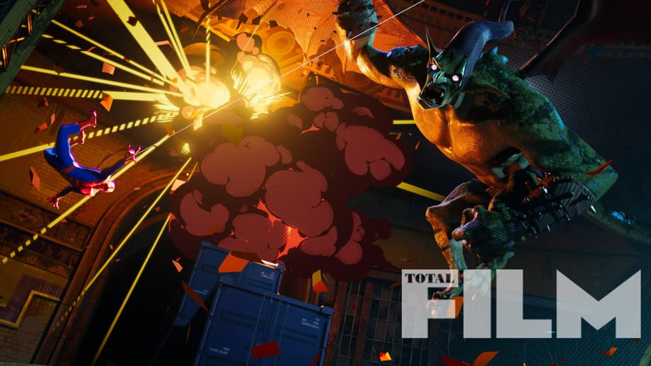 Peter Parker as Spider-Man (Chris Pine) and the Green Goblin (Jorma Taccone) in Sony Pictures Animation's SPIDER-MAN: INTO THE SPIDER-VERSE.